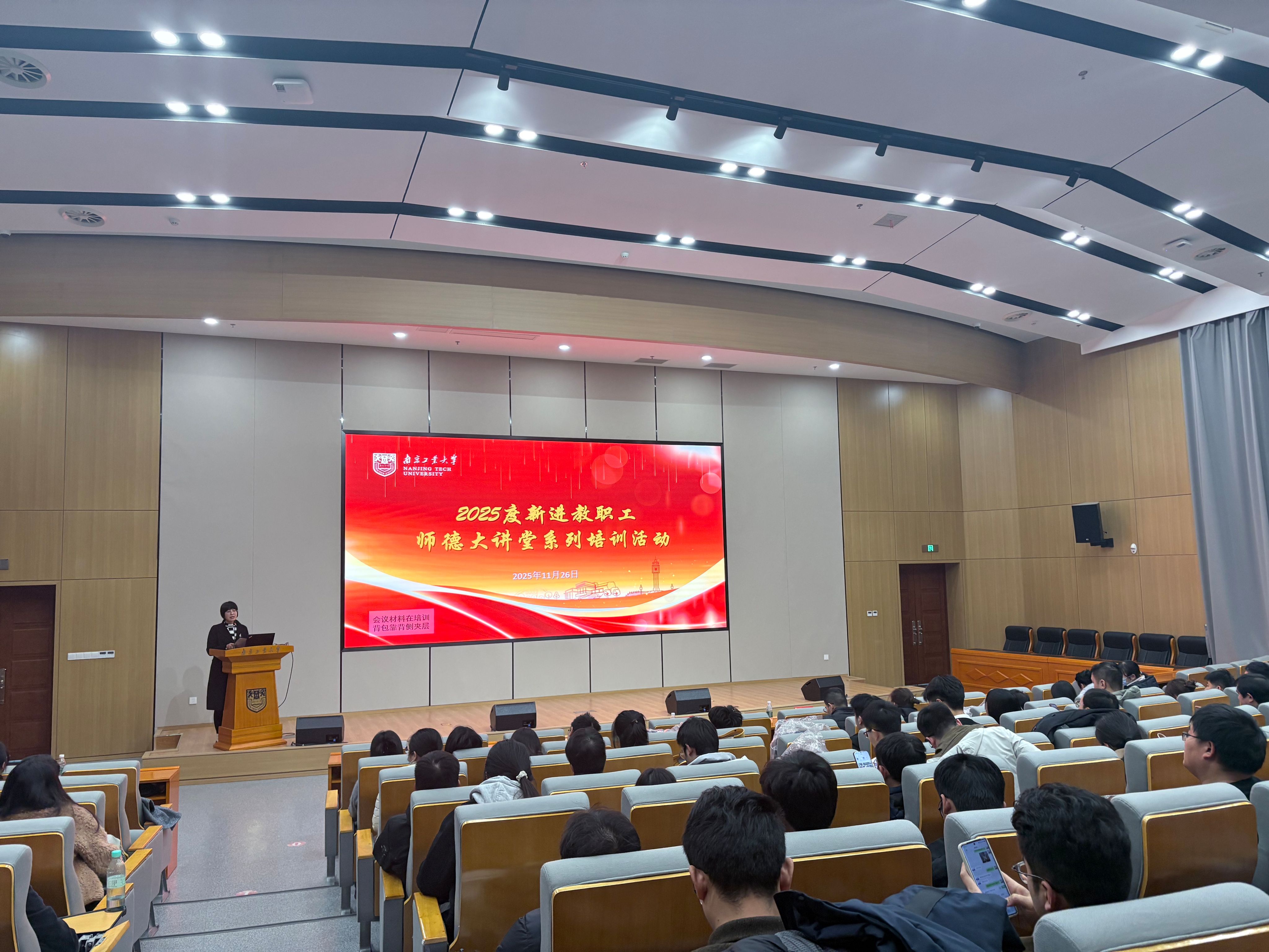 11月26日,2025年度新进教职工师德大讲堂系列活动在化学学科楼四楼报告厅举行。教学评估处处长居沈贵教授主讲题为《如何上好课,做好教学工作》立德树人讲堂,中国科学院南京地质古生物研究所党委委员曹长群研究员主讲题为《科研创新与科研诚信:共筑时代发展新基石》科研诚信讲堂,党委教师工作部副部长胡秀兰教授主讲题为《新进教职工职称政策解读》职业发展讲堂。活动由胡秀兰副部长主持。