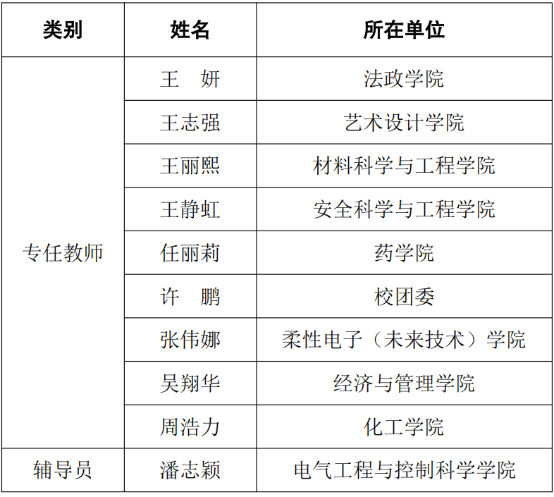 为进一步增强我校教师的职业自豪感和使命感,引导教师们以教育家精神作为一线教育工作者的价值引领和行为准则,做有理想信念、有道德情操、有扎实学识、有仁爱之心的“四有”好老师,成为学生为学、为事、为人的“大先生”,根据《南京工业大学“师德楷模”“师德十佳”评选表彰办法》(南工委师〔2024〕7号),我校组织开展了第十七届“师德十佳”评选工作。在各基层党委(党总支)推荐、专家函评、网络展示的基础上,经综合评审会讨论表决、校党委常委会研究审定,现将评选结果公示如下: